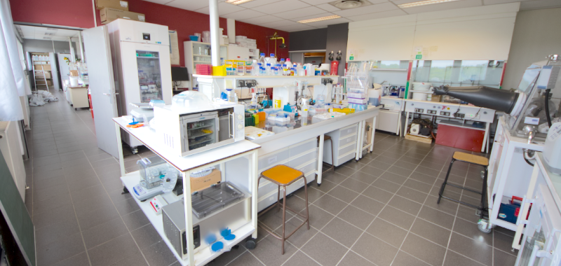 The 40 m2 protein chemistry laboratory possesses all required equipment for recombinant protein expression in E. Coli (registered L1-1102).
